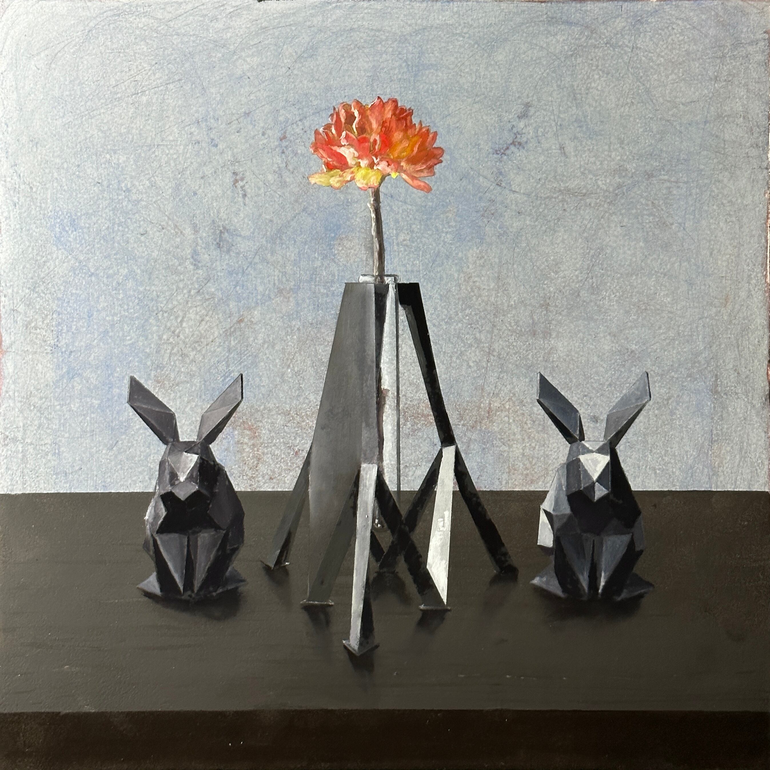 3Dプリントによる立体作品。Akihisa氏とのコラボ企画、狛兎2体と花瓶の3点セットです。セットでの購入の場合こちらからの購入がお得です。